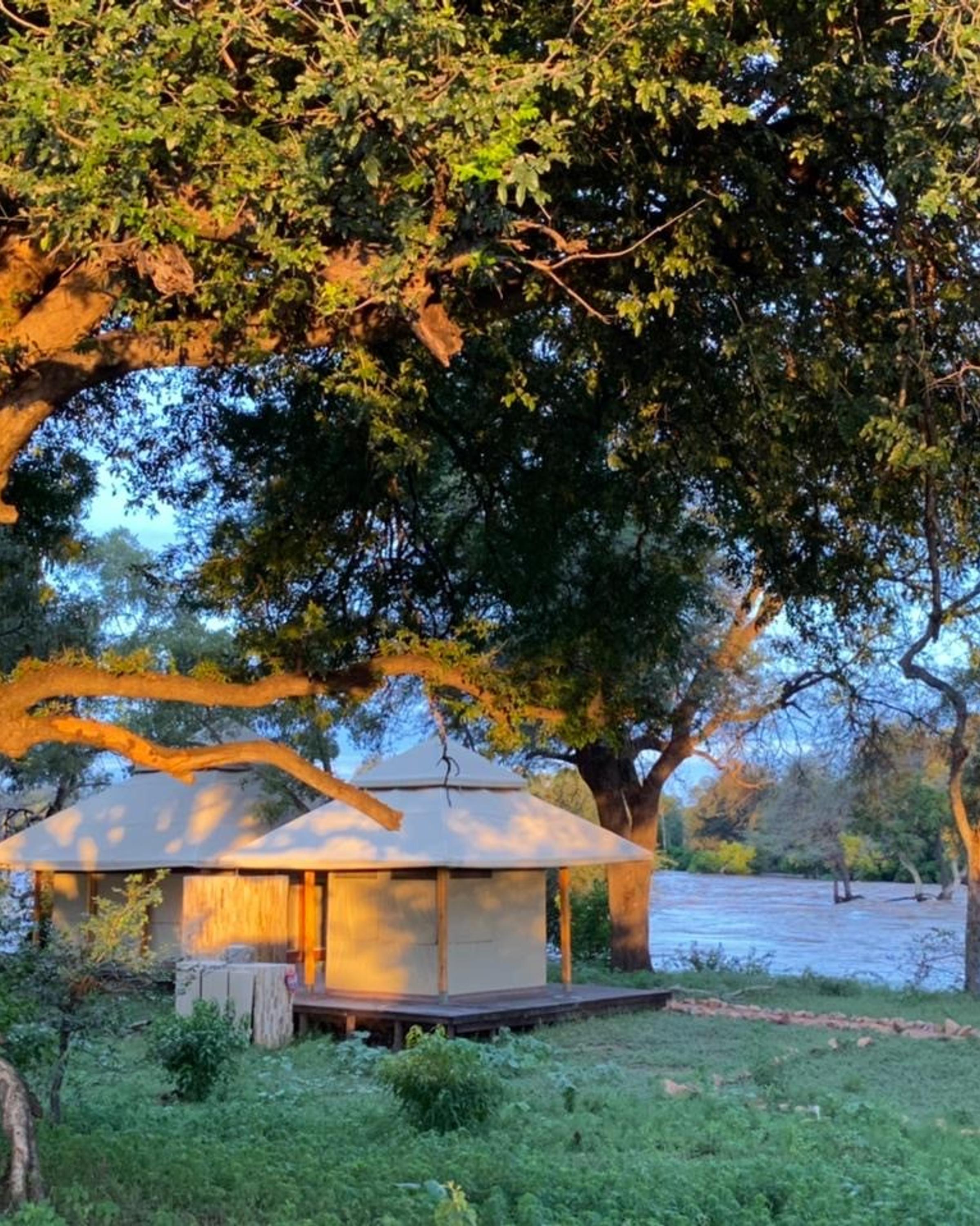 The tented camps are situated in one of the most picturesque locations in Botswana, within the largely untouched Tuli Block—a historic landscape characterized by rugged mountains and expansive plains, intersected by the powerful Limpopo River Delta with its dense river forests. These camps are uniquely positioned right on the river, in an area where a thriving ecosystem of flora and fauna is defined by the iconic Baobab tree. The region is known for hosting a unique leopard population and boasts the highest density of brown hyenas in Africa, as evidenced by studies. It is also home to large herds of elephants, zebras, lions, and elands, with an abundant birdlife. The entire camp is reserved for Kaer, providing the group with guaranteed privacy in the expansive landscape. The master bedroom tented suites are widely spaced, each featuring a private deck with a small plunge pool. All accommodations are initiatives of the Timbo Foundation, a Dutch foundation dedicated to the free migration of wild animals, the reintroduction of the rhinoceros and sable antelope, and the protection of the leopard and other African wildlife. The foundation also supports the local population in education and employment. Consequently, the professional and friendly staff—from receptionists to guides, from drivers to cooks, and even managers—all hail from the surrounding area. All revenue generated by the accommodations is allocated entirely to the foundation.